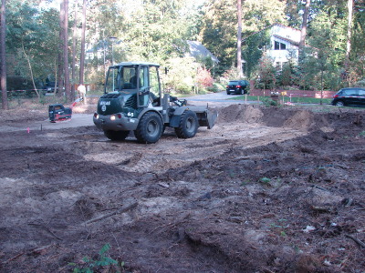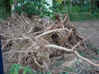 Am Montag ging es mit dem Zerstörungswerk los. Wieder kam ein Bagger angerollt und hat tiefe Wunden in unser schönes Grundstück geschlagen ...