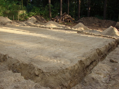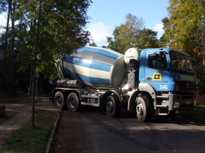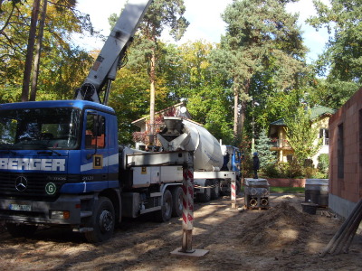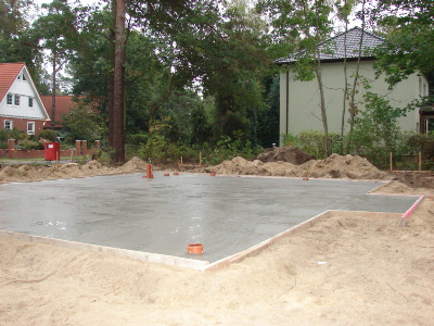 Morgens gegen 8 Uhr waren die Schnurgerüste schon gezogen. Die Handwerker waren fleißig beim Anzeichnen der Leerrohre. Beton für die Frostschürze sollte gegen 10 Uhr da sein, also hieß es "Gas geben".