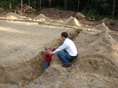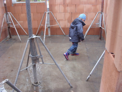 ... der kleine Bauherr schaut schon mal in Richtung neues Kinderzimmer: "Papa, warum darf man da noch nicht drauf gehen?..."