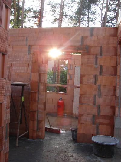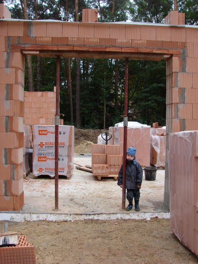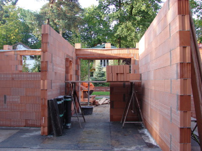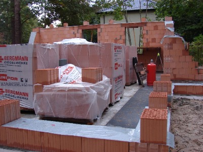 Die kleine Schwester der Mauer im Osten ist ... genau: die Mauer im Westen. Hier sehr vorteilhaft mit dem angefangenen AZ-Fenster und der entstehenden Terrassen - Doppeltür abgelichtet.
