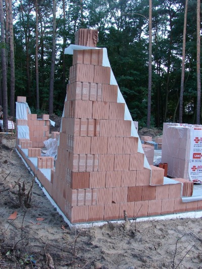 - die erste Reihe ist angelegt, zwei Ecken gemauert