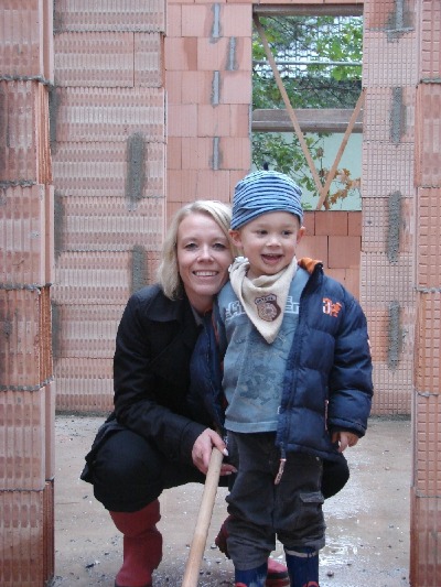Bauherrin und abgekämpfter kleiner Bauherr strahlen um die Wette.