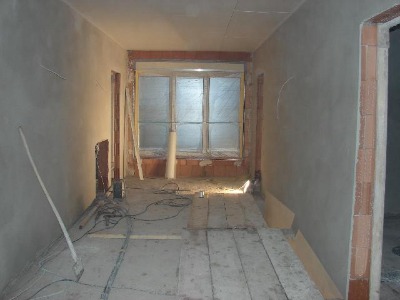 ... Und hier dann von rechts nach links. Und weil wir uns nicht einigen konnten, wem das eine Fenster im AZ gehört, lassen wir einfach ein zweites einbauen (das angefangene Loch). Fensterlöcher kosten ja zum Glück nix extra.