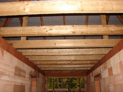 Heute ging´s dann hoch hinaus. Blick vom Nordfenster oben in Richtung Galerie. Hinten links die Tür zum Schlafzimmer. Rechts der Eingang zum Kinderzimmer.