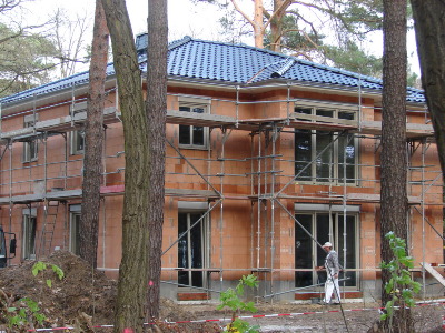Auf dem Gerüst sah das - zumindest bei der Bauherrin - noch anders aus :-). Was soll das dann zum Richtfest werden? Da geht es schließlich noch eine Etage höher!
